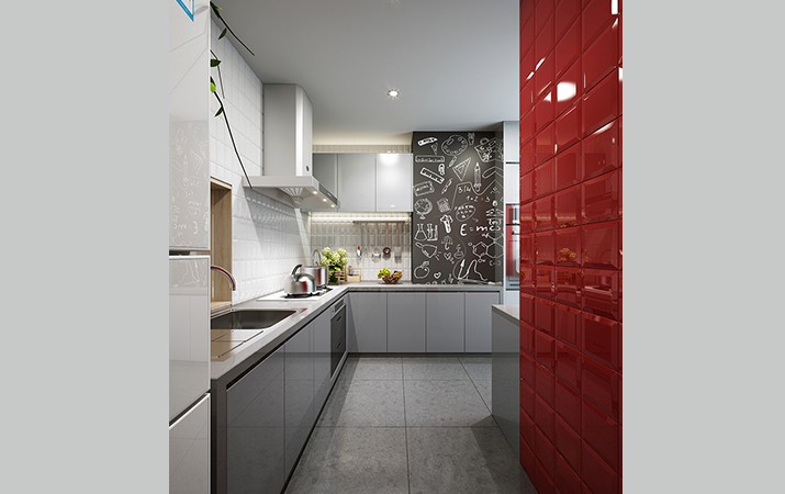 整体空间以白色和木色搭配的素色为主,局部空间厨房、主卫、公卫分别用了红黄绿这三种鲜艳的色彩,在简洁和跳跃的撞中迸发活力。
