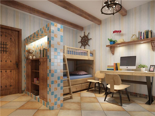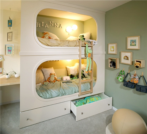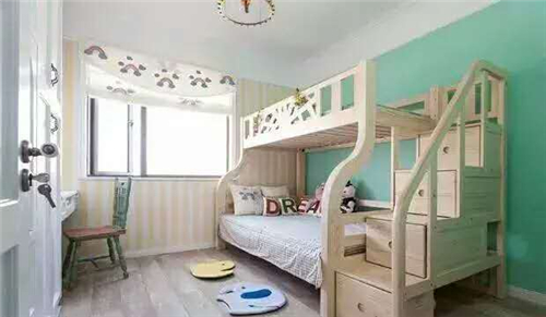 小户型的儿童房,双排摆放显然会占了不少的空间,使得孩子们的活动空间大大减少。因此上下铺的形式会更加合适。尤其是刚生完第一胎,有意愿生第二胎,可以优先选择这种高低床。即使第二个孩子出生了,也会有个准备,并且保证两个孩子都有自己的独立的成长空间。